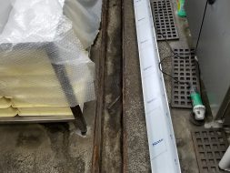 厨房内の排水溝が汚いのできれいにしたいとの要望で、何点かご提案させていただきましたが、今回は、側溝内にステンレスで施工を依頼されました。勾配が一定でなかったため、排水溝内のコンクリートを斫ったりして勾配を一定にし一回り小さくしたステンレスの側溝を入れ、廻りを防水処理して工事しました。お客様は、大変気に入っていただき、掃除するのが楽になったと言っていただけました。今回の工事は、私が独立する前に機械製造の会社に勤めていた経験を活かし、加工業者に図面からお越し作成していただきました。本来なら、建築関係の問屋にお願いすると高いものになってしまいますが、直接依頼しているので、低価格でできました。